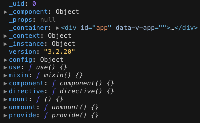 控制台输出的createApp()创建的Vue实例对象