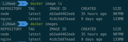 可以使用docker image ls或者docker images来查看以及拉取的镜像列表