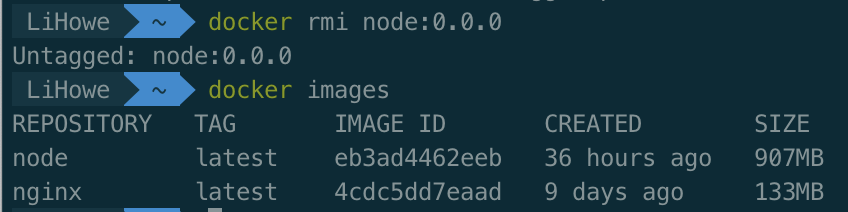 比如删掉我们刚刚打tag的node镜像(实际上是删掉了tag)