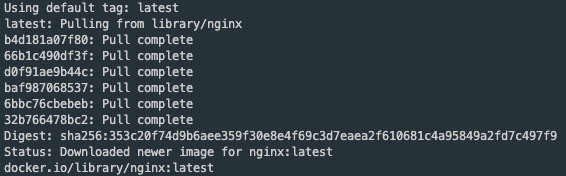 还是以nginx为例, 执行docker pull nginx, docker默认会拉取最新版本(latest)