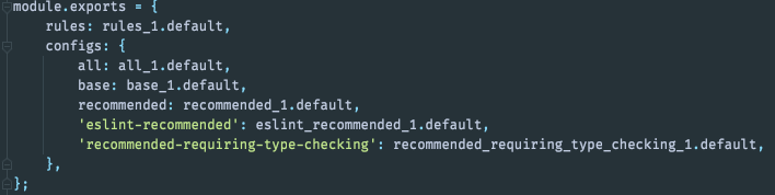 可以看出, @typescript-eslint 导出了5个配置文件, 所以我们在使用时, extends 可以在这5个中进行选择, 比如我们选择使用推荐配置: extends: ['eslint:recommended', 'plugin:@typescript-eslint/recommended']