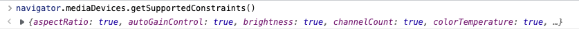 返回的对象的key即为我们可以设置的媒体设备约束参数getUserMedia(constraints): Promise<MediaStream>