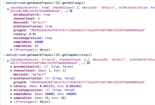 mediaStream.getAudioTracks()[0].getConstraints()